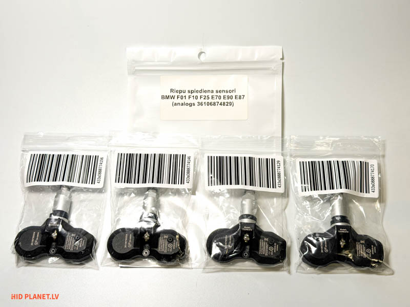 Jauni riepu spiediena sensori BMW automašīnām, kas aprīkoti ar TPMS (Tire Pressure Monitor System) sistēmu ar tiešu parametru kontrole no fiziskajiem sensoriem katrā riteņā - RDC. Analogie sensori, lai aizstātu oriģinālos ar numuru 36106874829. Frekvence 433 MHz.
