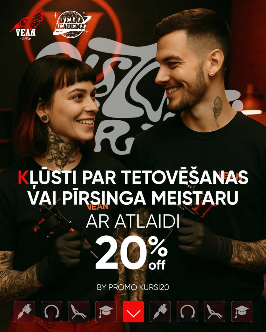 🔥 Atlaides apmācībām – ja vēlies apgūt pirsingu vai tetovēšanu, šis ir labākais brīdis sākt.